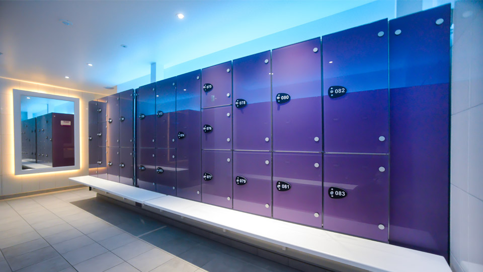 Working to the exacting specification of Birmingham based architects, Bignell Shacklady Ewing, the Cabrillant 600 cubicles and glass lockers in a deep purple and white colour scheme creates a feel of modern opulence.